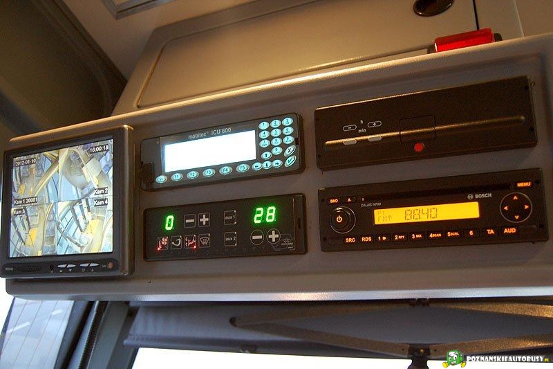 Znajduje się w niej monitor od kamer, sterownik wyświetlaczy/kasowników, sterownik ogrzewania, tachograf i radio.